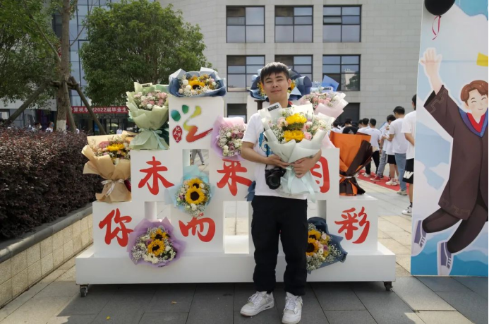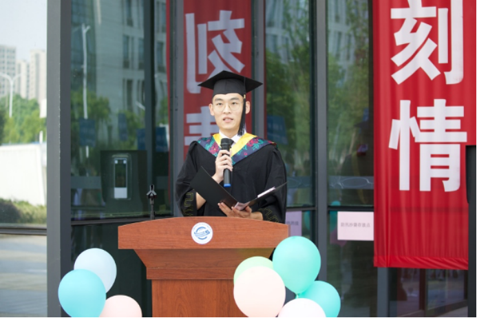 毕业生代表冯世元发言,他表达了对学校、学院、老师、同学、父母感激之情,同时展望美好未来,希望同学们不负青春、不负韶华,在青春赛道上跑出最佳成绩。