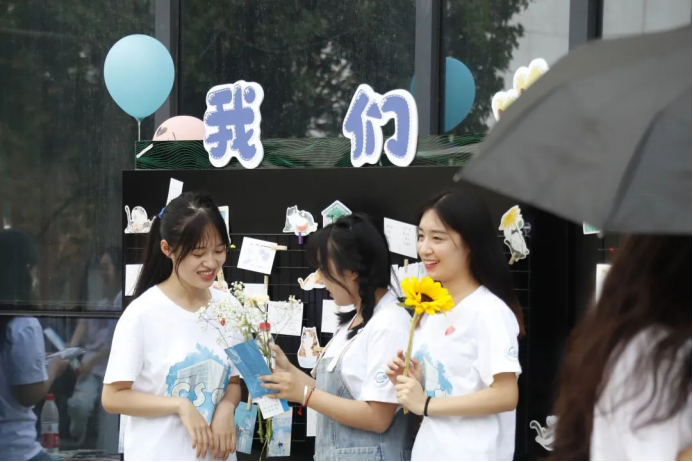 “没有毕业礼,新旅程就没有正式开篇。”跨过毕业门,走过红地毯,拿起马克笔,在签名墙上写下“相信未来”……仪式感满满的毕业庆典,就在此刻拉开了帷幕。毕业生们统一身着定制毕业纪念衫,在鲜花与气球的簇拥中,步入会场,迎来自己人生中的重要时刻。