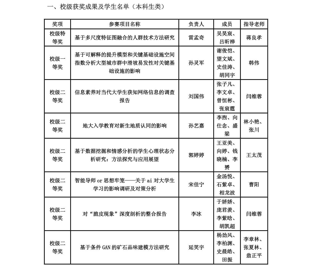 近日,学校第三十四届学生科技论文报告会落下帷幕。在此次科技论文报告会中,学院高度重视,教师积极参与指导,学院团委学生会、研究生会有效组织,伟德官网参赛队伍总计213支,参赛人数与获奖数量均创下历史新高。根据学校相关文件精神,经专家评审,伟德官网共获评校级特等奖2项,校级一等奖8项,校级二等奖26项,校级三等奖36项;王茂才、方芳、蒋良孝、张冬梅、唐厂等5位老师获评优秀指导老师;李欢欢获评优秀工作者;伟德BETVLCTOR1946官网获评优秀组织单位。获奖情况见附表。